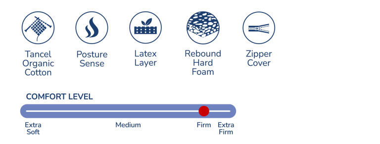 Made of 100% Natural and Sustainable Latex, our Latex mattress offers exceptional comfort and support, providing a supportive sleeping surface that conforms to the body's shape to achieve deep and restorative sleep.
